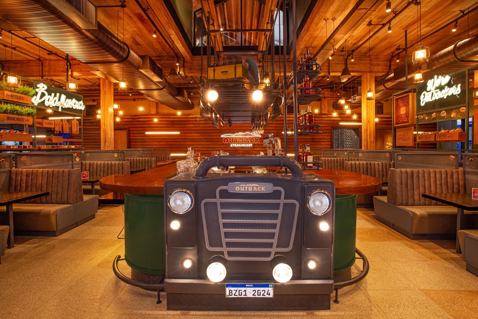 O novo restaurante é projetado para gerar uma imersão na cultura australiana, bebendo na fonte do explorador contemporâneo. O bar traz um grande jipe, simbolizando a aventura, e o restaurante tem pins que contam a história da marca espalhados por toda parte.